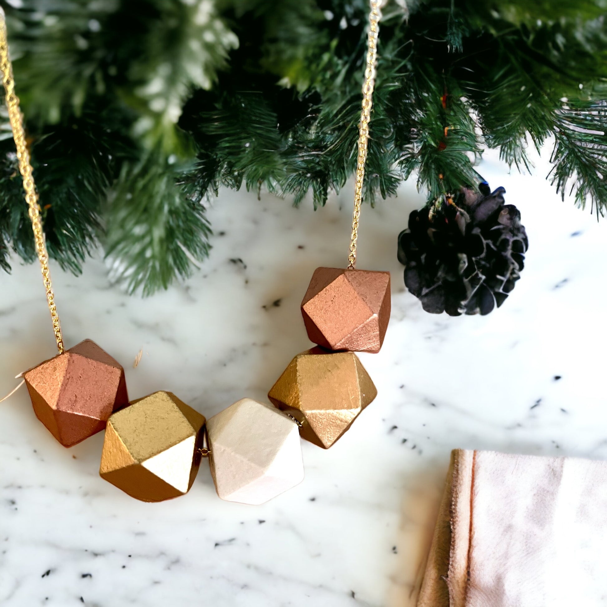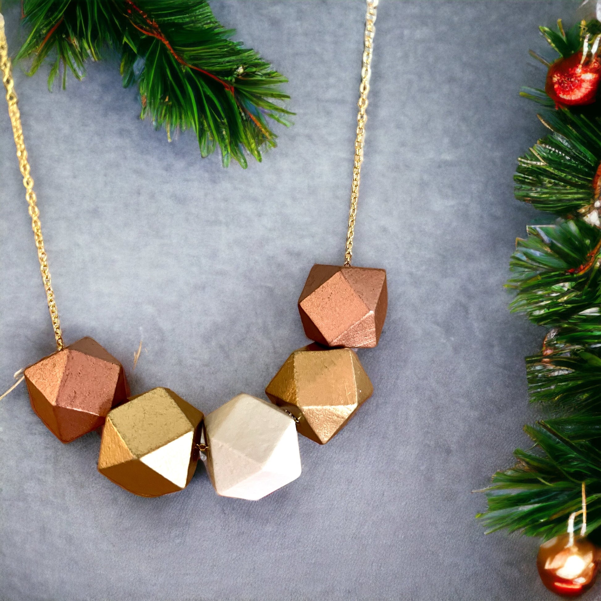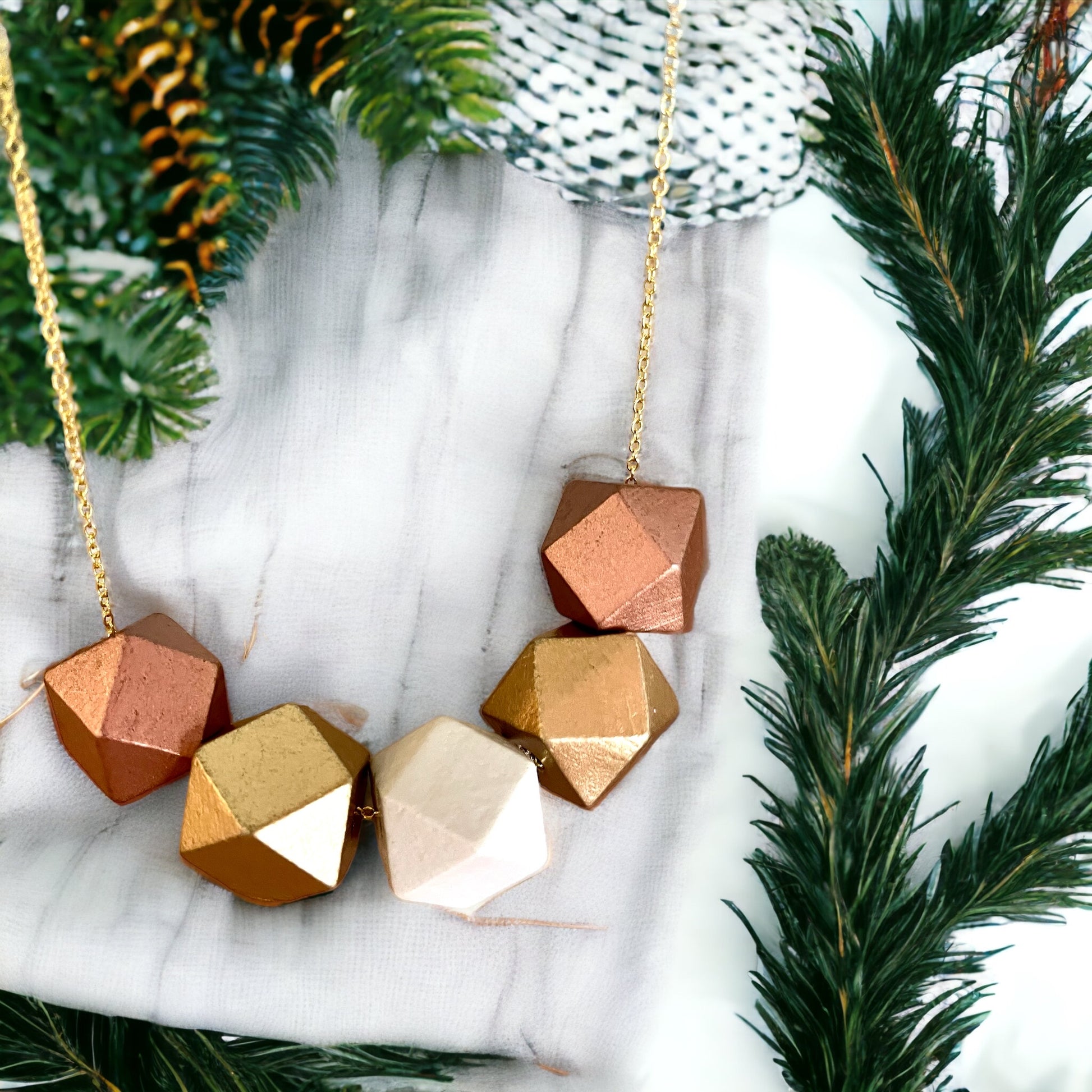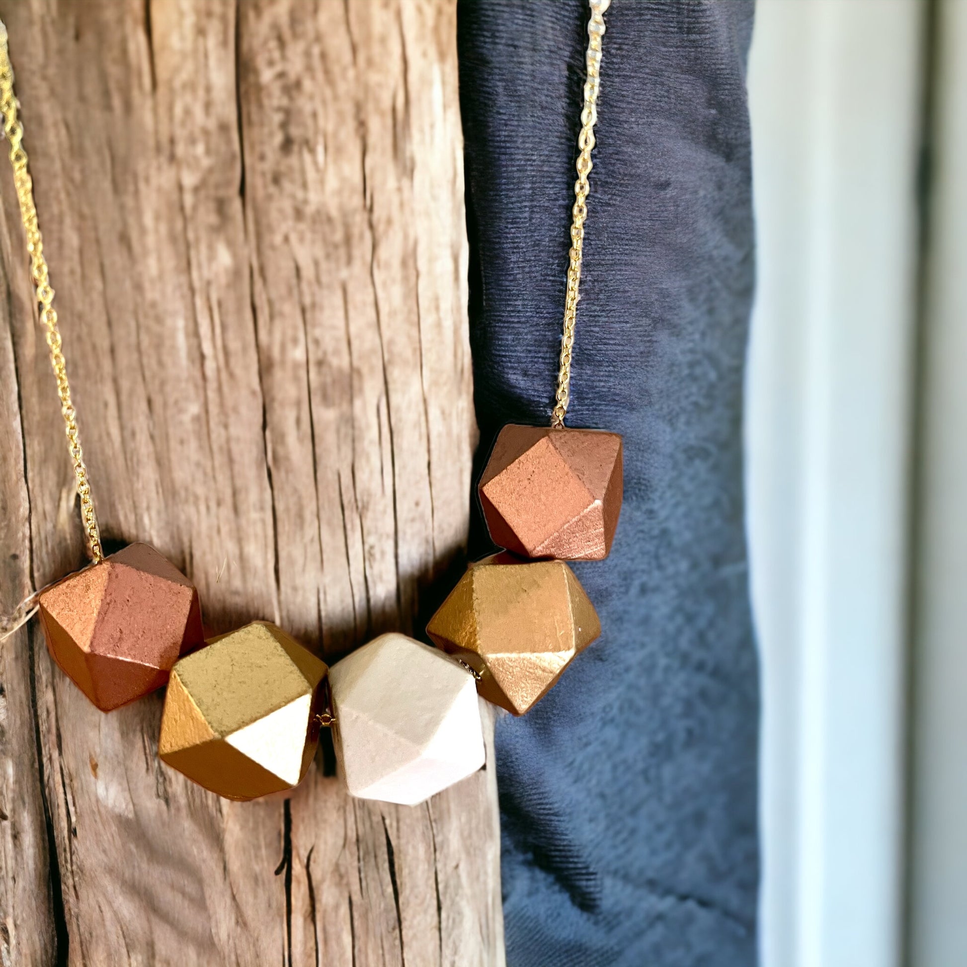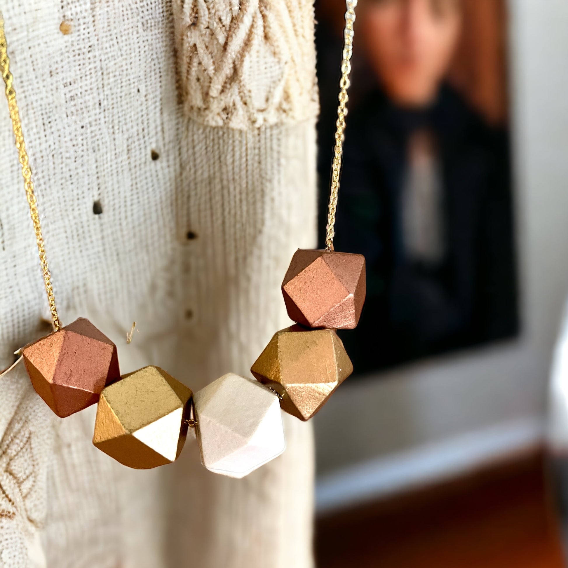 This necklace is truly one of a kind! Crafted from 20mm hedron wood beads and sealed to preserve the color, this statement piece can easily be dressed up or down, adding a touch of color and fun to any outfit. Featuring either a 24” gold, silver, or waxed cotton cord/chain with an extender, it's a must-have for any jewelry collection.